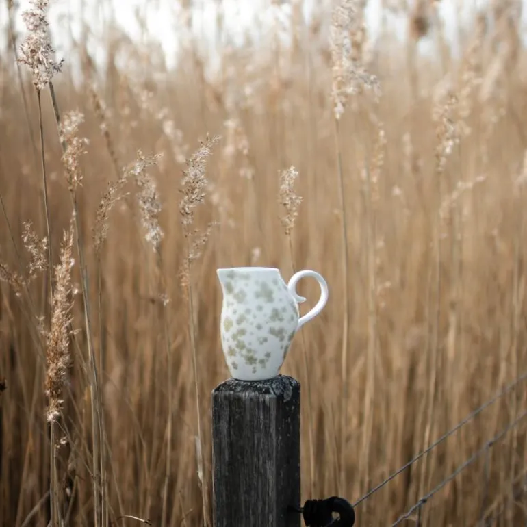 Slåpeblom grønn liten mugge 25 cl fra Wik & Walsøe i benporselen av høy kvalitet kjennetegnes ved den ujevne og bølgete kanten som fremhever følelsen av håndverk. Med produktet i hendene kan man kjenne det taktile mønsteret som preger designet.