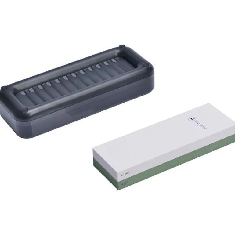 Med denne keramiske slipesteinen kan du enkelt vedlikeholde knivene dine og sørge for at de alltid er skarpe og klare til bruk. Steinen har to ulike sider med forskjellig grovhet, tilpasset ulike behov i slipingen. Den grønne siden har en grovhet på 240 og brukes til grovsliping og reparasjon av knivens egg, noe som gjør den ideell for å rette opp skader eller sløve blader. Den hvite siden, med en grovhet på 1000, er finere og er perfekt for å polere og glatte ut små ujevnheter, slik at du oppnår en jevn og skarp finish på knivene dine.