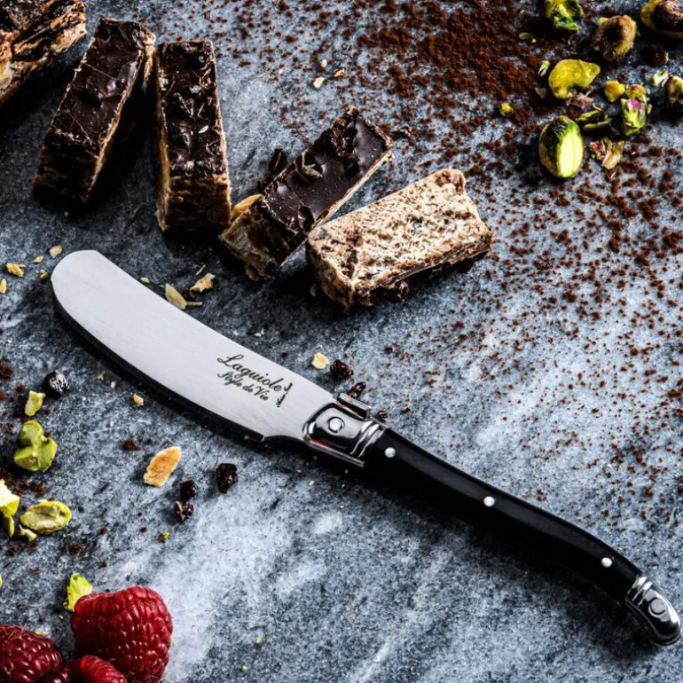 Laguiole smørknivsett i svart består av fire elegante kniver laget i rustfritt stål med et tidløst og moderne preg. Knivene er komfortable å bruke og egner seg til både smør, pålegg og myke oster – perfekt til frokost, lunsj eller snacksbord.