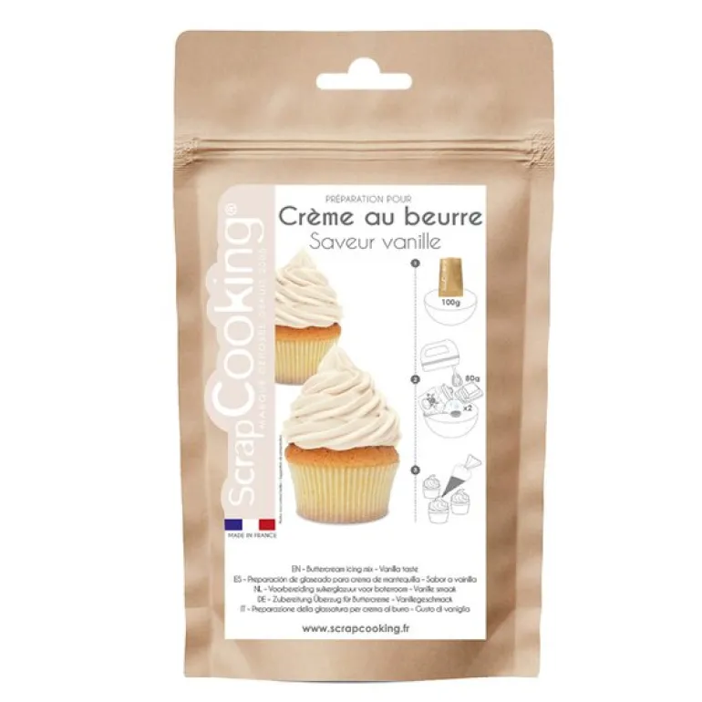 Med denne smørkremmiksen fra ScrapCooking lager du vaniljesmørkrem raskt og enkelt – perfekt for både nybegynnere og bakeentusiaster! Du trenger kun 100 g miks, 2 ts melk og 80 g smør. Resultatet? En luftig og smidig krem med deilig vaniljesmak, klar for dekorering.