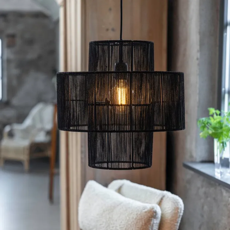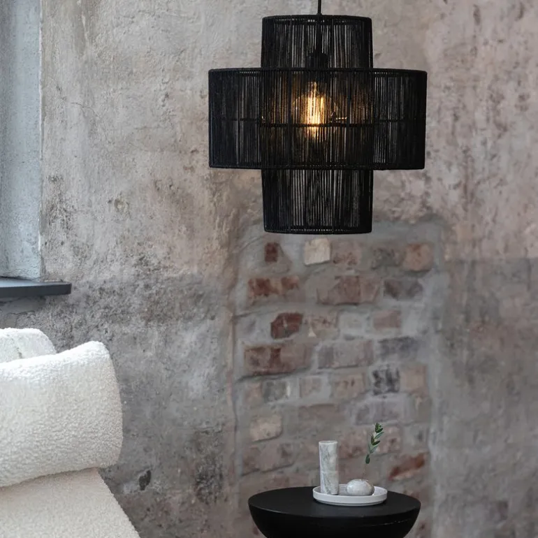 Med Soga taklampe 40 cm svart fra Markslöjd får du en moderne taklampe i sort matt jute som gir et varmt og stemningsfullt lys. Med sin runde form og en diameter på 40 cm, passer den perfekt over spisebordet eller i stuen, der den skaper en rustikk og bohemsk atmosfære. Lampen er håndlaget med to lag sort jute, noe som gir den et særpreg og en naturlig tekstur som står godt til både klassiske og moderne interiører.
