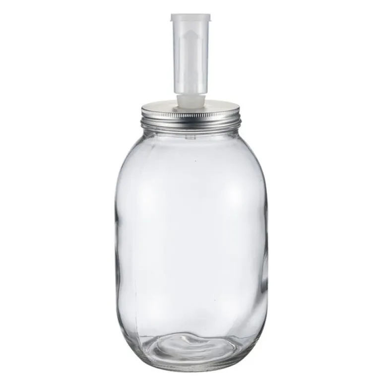 Krukken har en kapasitet på 3 liter, som er perfekt for å fermentere en stor mengde og deretter helle over i små glass for oppbevaring til senere bruk.