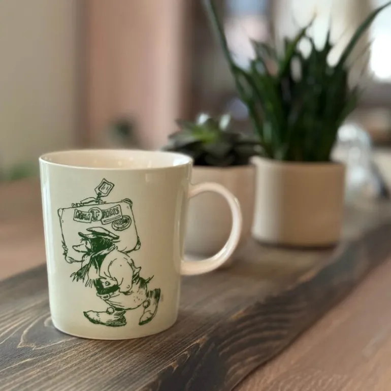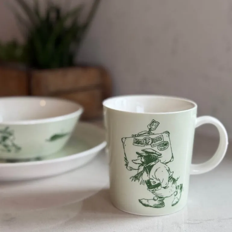 Solan i Italia krus fra Flåklypa rommer 33 cl og bringer med seg både varme og eventyrlyst. I grønn fargetone og med et humørfylt motiv ser vi Solan klar for sydligere breddegrader – iført solbriller og lommeparlør, på vei inn i et italiensk eventyr med fullt pågangsmot. Kruset formidler den bråkjekke skjæras energi og optimisme på en sjarmerende måte.