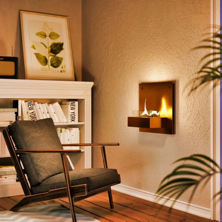 Solo vegghengt peis 90 0,5L i gull fra Tenderflame kombinerer moderne design med funksjonalitet, og er et perfekt valg for deg som ønsker å skape en lun og innbydende atmosfære i hjemmet. Denne peisen er ideell for leiligheter uten pipe, og med sitt elegante flammebilde gir den en varm og koselig stemning i rommet. Solo peisen har en brenntid på 4-5 timer og en varmeeffekt på 1100 watt, noe som gjør den til en effektiv varmekilde som samtidig fungerer som en stilfull interiørdetalj.