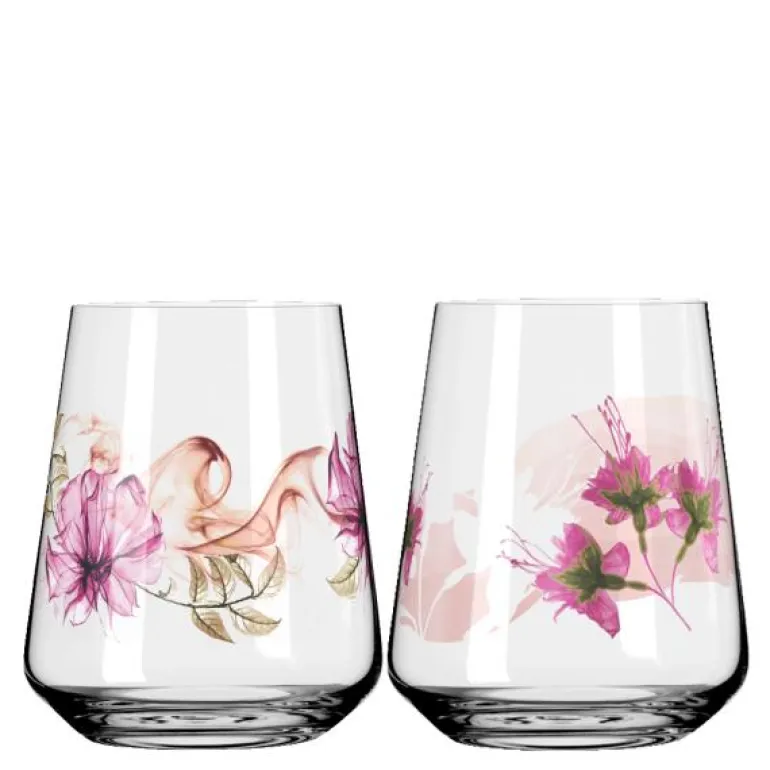 Sett med to vannglass i serien Sommersonett fra Ritzenhoff. Alle sommersonett vannglass er produsert i Marsberg, Tyskland, og er dekorert med motiv tydelig inspirert av sommeren og dens farger. Vannglassene kommer i en fin gaveeske.