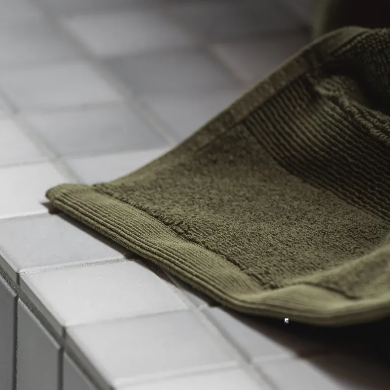 Spa vaskeklut 30×30 cm oliven fra Høie. Eleganse og kvalitet går hånd i hånd i denne utsøkte Spa-håndkleserien laget av tyrkisk bomull. Tyrkisk bomull er kjent for sine ekstra lange, sterke og myke fibre, som gir håndklærne en luksuriøs følelse. Den unike veveteknikken, kombinert med den høykvalitets bomullen, gir vaskekluten en spesielt myk og behagelig tekstur som kjennes fantastisk mot huden. Disse vaskeklutene er svært absorberende og tørker raskt, noe som gjør dem praktiske i tillegg til komfortable. Bomullen, dyrket i den berømte Egeer-regionen, blir bare mykere med tiden, og forbedrer dermed opplevelsen etter hver vask.