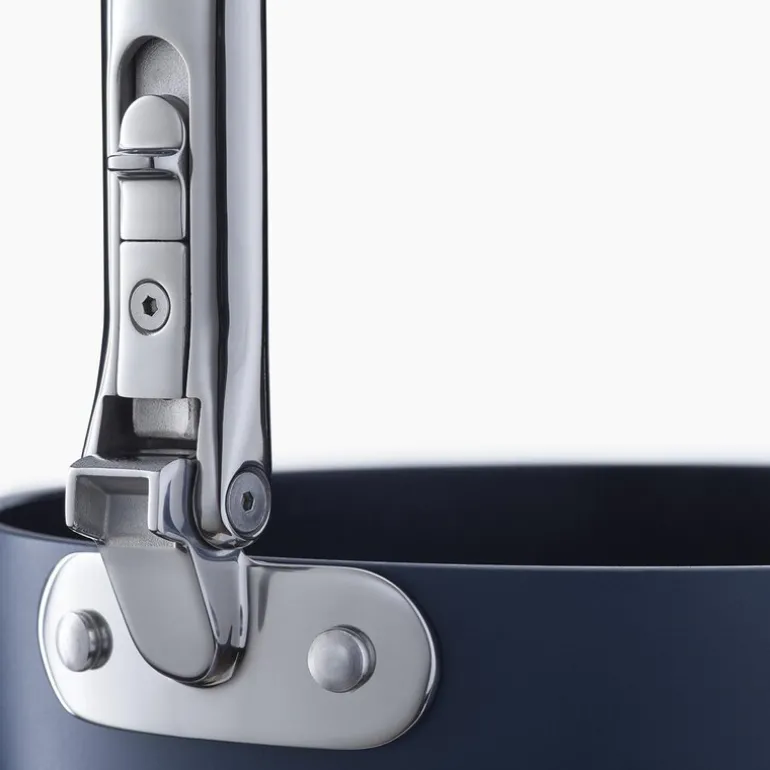 Hver gryte leveres med et herdet glasslokk som også har et sammenleggbart håndtak, en smart gryte-lokk-stativ og et par filtpannebeskyttere, noe som gjør kompakt lagring enda enklere. Egnet for alle typer komfyrer, inkludert induksjon.