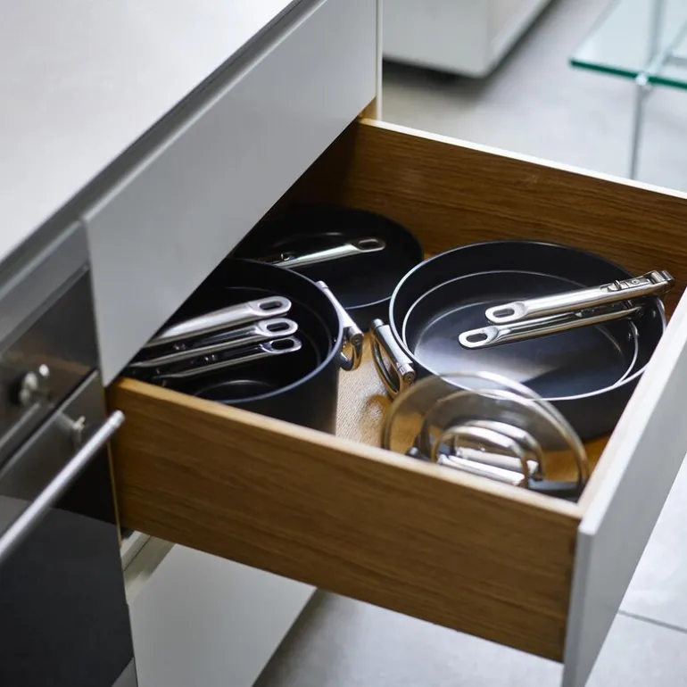 Space stekepanne 24 cm i midnight blue fra Joseph Joseph er en del av Space-kolleksjonen, som kombinerer funksjonalitet og moderne design i kokekar av profesjonell kvalitet. Denne pannen har foldbare håndtak i rustfritt stål, utstyrt med den pålitelige SwingLock™-teknologien som har vært testet i over 20 år, og sparer opptil 50 % mer plass enn tradisjonelle panner. Den er laget av kraftige aluminiumslegemer som sikrer jevn varmefordeling og lang holdbarhet.