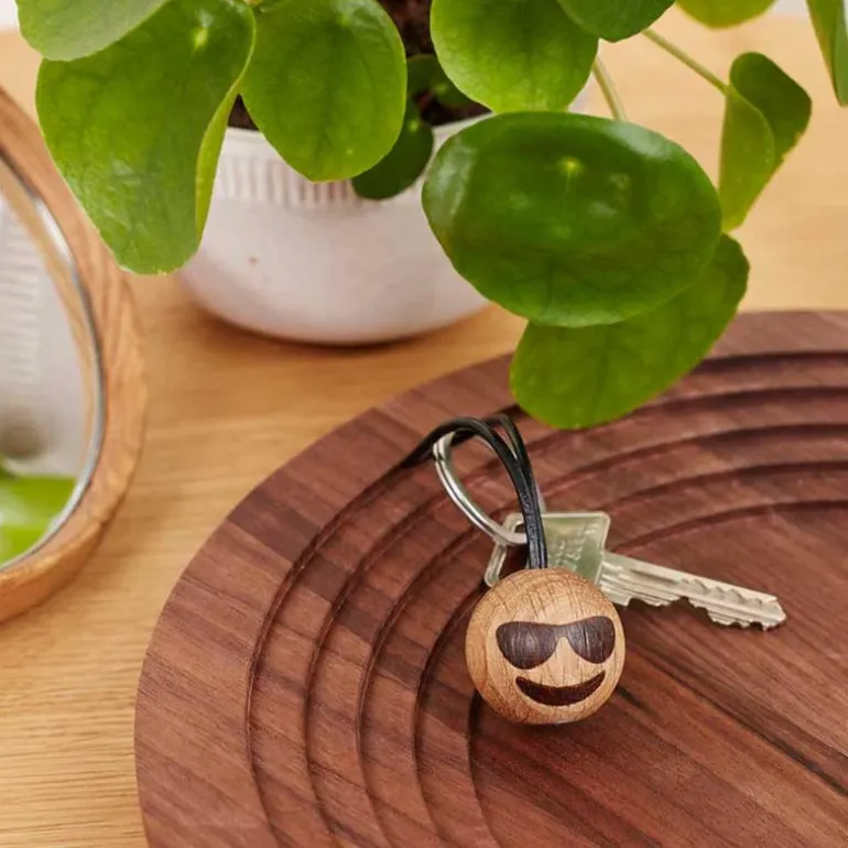 Nøkkelring i eik, Cool, fra serien Spring Emotions® til Spring Copenhagen. Duoen Mencke&Vagnby har forvandlet en rekke av de emojiene vi alle sender på chat og tekstmeldinger, til flotte og søte dekorasjoner. En serie som har fått navnet Spring Emotions®.Følelser er noe vi alle har – uansett hvor vi kommer fra eller hvem vi er. De er med på å knytte oss sammen, og følelsenes uttrykk er et universelt språk som vi alle forstår. Vi smiler når vi er glade. Vi gråter når vi er lei oss. Og vi ler når det skjer noe morsomt.Spring Emotions® fanger nettopp dette. De finnes i mange forskjellige variasjoner, og derfor er det en Spring Emotion® til enhver anledning.Mål:Diameter: 3 cmCa 8 cm lang lærrem.