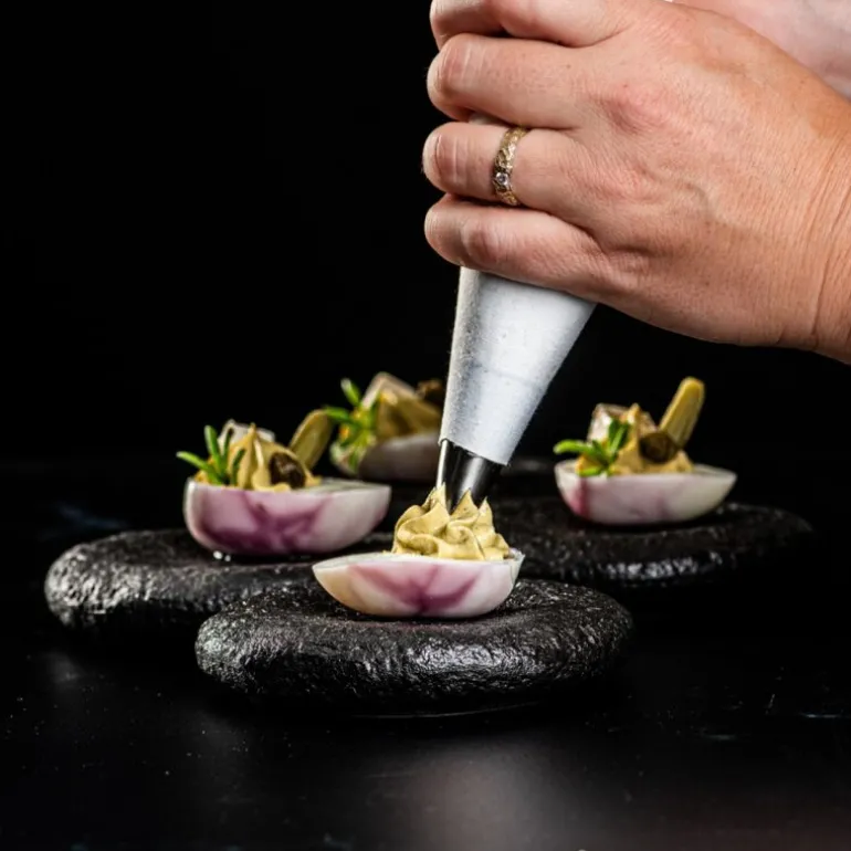Bruk det til å lage mønster på cupcakes, toppinger på kaker eller dekorative elementer med puré og krem på tallerkenen. Settet kombinerer funksjon og kreativitet på kjøkkenet.