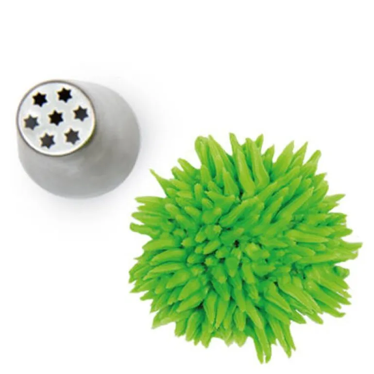 Lag dekorasjoner med tekstur og presisjon ved hjelp av Silikomarts Grass sprøytetipp. Med et stjernemunnstykke på Ø25 mm er den perfekt for å skape gress, pels, hår eller andre detaljerte effekter på kaker og desserter.
