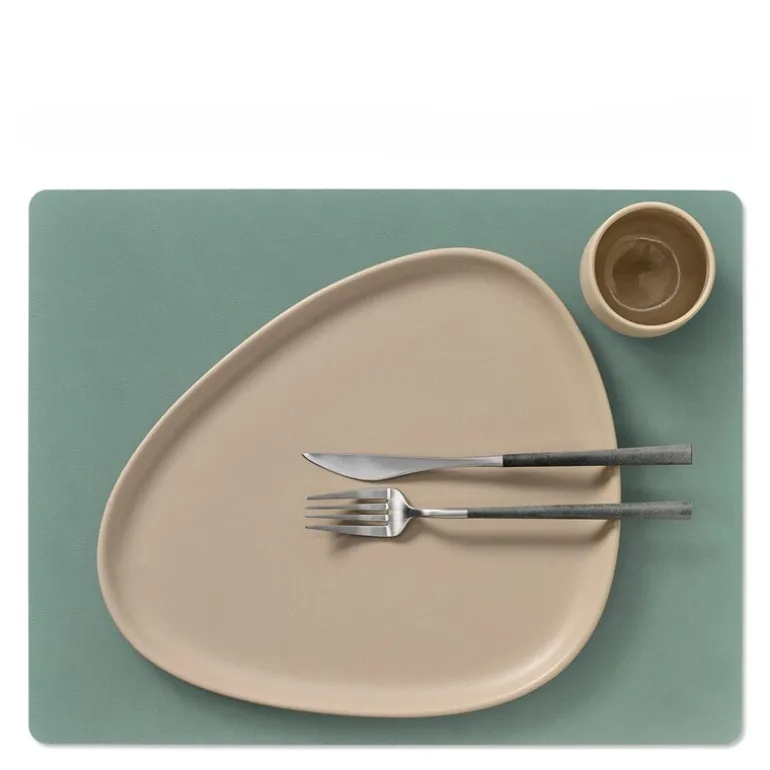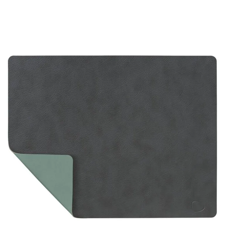 Curve Cloud spisebrikke tosidig antrasitt/pastellgrønn. TABLE MAT DOUBLE CURVE er LIND DNAs mest allsidige spisebrikke – en tosidet spisebrikke laget av OEKO-TEX®-sertifisert resirkulert skinn med forskjellige farger og overflater på hver side. De forskjellige fargene gjør det mulig å endre utseendet på borddekningen en kort stund, ved å bare snu LIND DNA TABLE MAT DOUBLE CURVE.