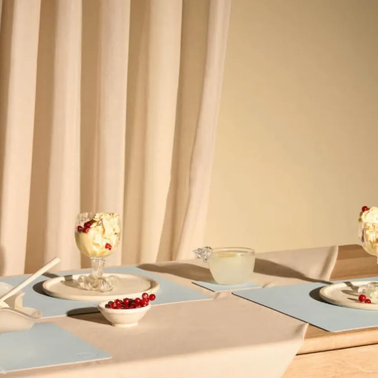LIND DNA Square Nupo glassbrikke 10×10 cm soft sky er for deg som leter etter et balansert, men ukonvensjonelt og moderne utseende for enhver duking.