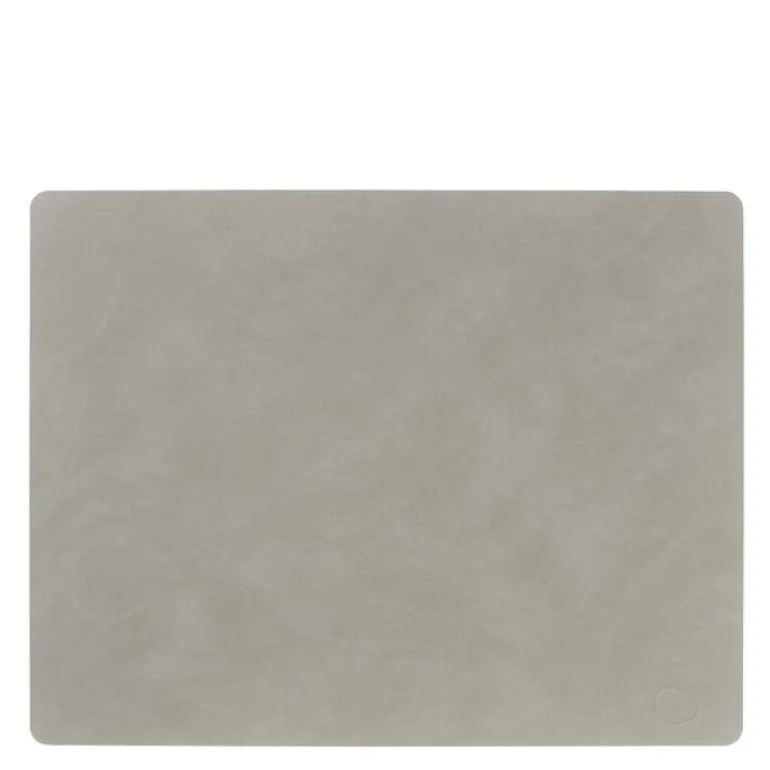 Square Nupo spisebrikke L 35×45 cm lys grå. LIND DNA Square Nupo spisebrikke er en vendbar spisebrikke i OEKO-TEX® resirkulert skinn med forskjellige farger og overflater på hver side.