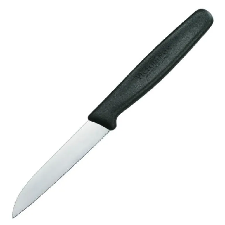Victorinox grønnsakskniv 8 cm i rustfritt stål med sort plastskaft. Kniven har rett egg og er ypperlig til å skrelle og kutte små frukt og grønnsaker.