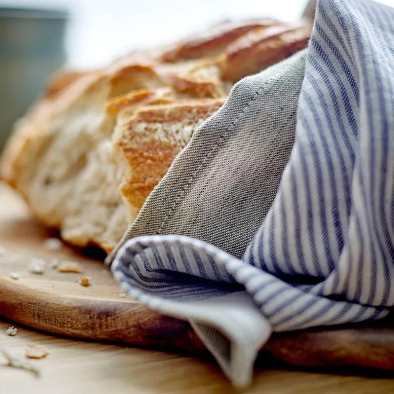 Denne markante stripede designen skaper et klassisk og flott bakteppe for hverdagslivet. Du kan kombinere kjøkkenhåndklær i forskjellige farger for å oppnå en inspirerende og frisk retrostemning, eller du kan velge en minimalistisk look der alle kjøkkenhåndklærne har samme farge. Kjøkkenhåndkleet er laget av bomull og lin.