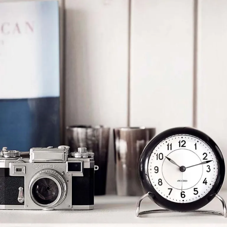 Få kontroll over tiden og sjekk tidens innredningstendenser. Arne Jacobsens Station-klokke ble opprinnelig tegnet til el-vare-produsenten LK i 1941. Originaldesignen for den ikoniske klassikeren er nå gjenskapt og forvandler en anonym hvit vegg til et markant designstatement. Den grafiske designet understrekes av en toppring i sort aluminium. Finnes i tre størrelser, her i mellomstort format. En god gaveide som vil gå i arv i generasjoner.
