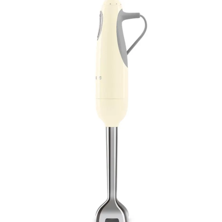 Kremfarget stavmikser HBF11, fra Smeg – uten ekstra deler – i 50`s Retro Style. Flotte designelementer til ditt kjøkken, der estetikk og funksjonalitet i høysetet! Stavmikseren kan brukes til alt mulig matlaging, eksempelvis mose poteter, lage dressing, supper og vispe krem.