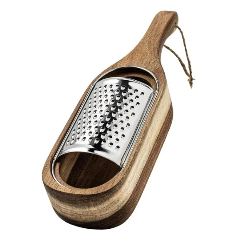 Praktisk og dekorativt rivjern 24 cm i natur og stål, fra Steel Essentials-serien til Anders Peter. Med sitt slitesterke blad i rustfritt stål og stilig akasietrebeholder er dette rivjernet en perfekt kombinasjon av funksjonalitet og design for jevn og fin riving av parmesan, pecorino og andre harde oster.
