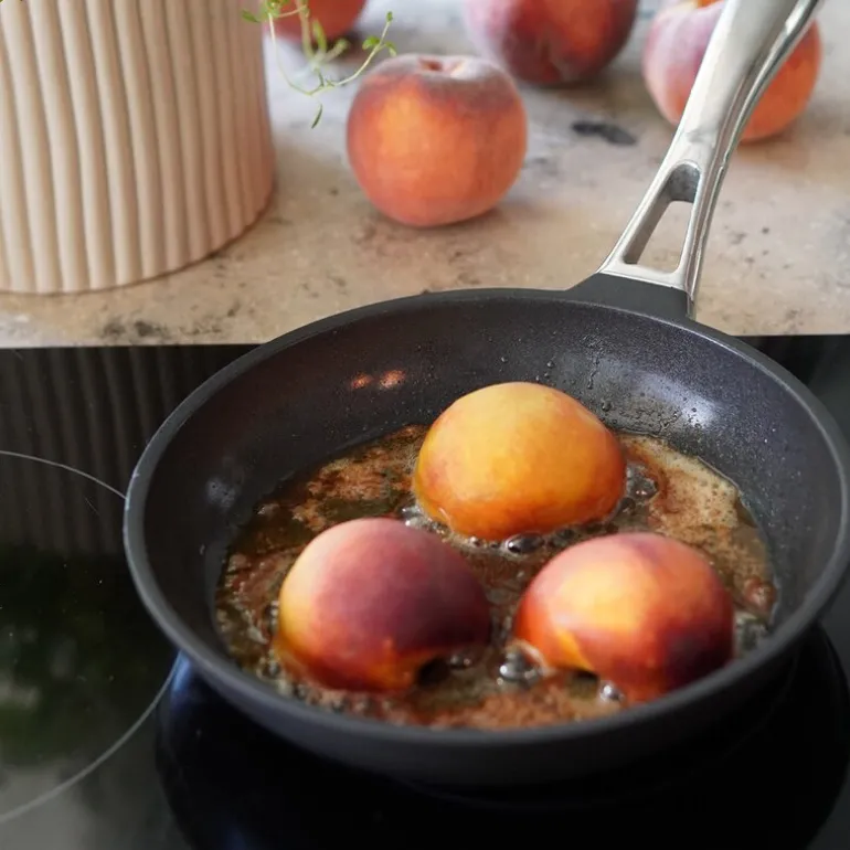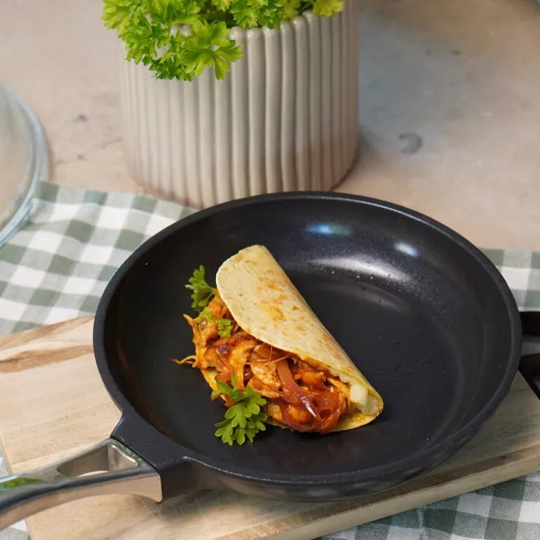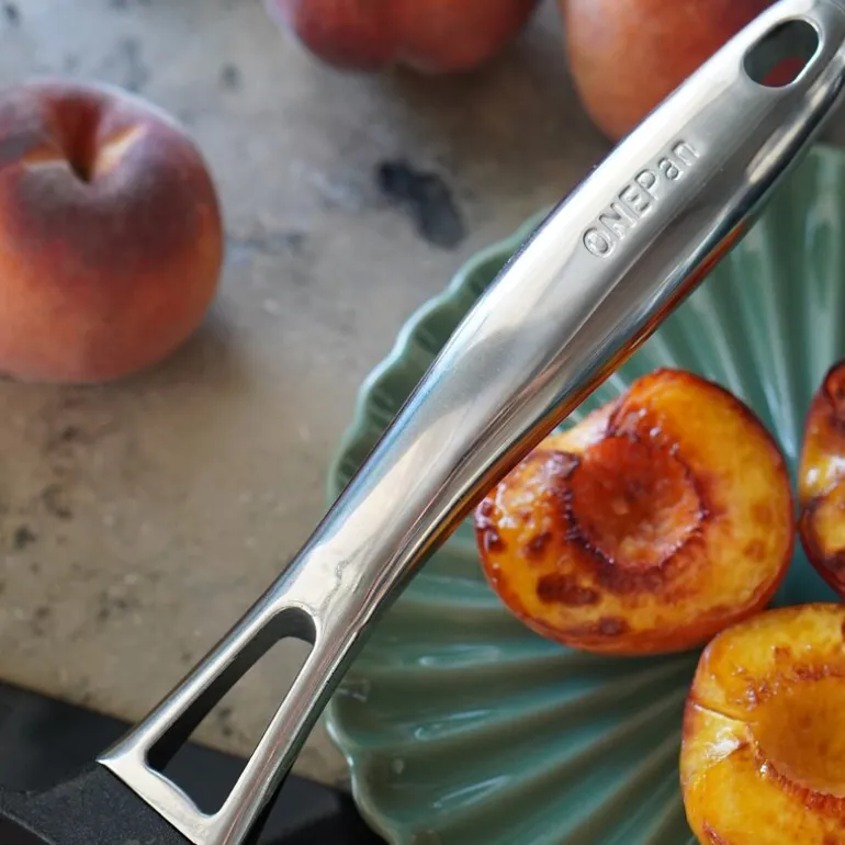 OnePan 20 cm er designet for fleksibilitet og fungerer på alle kokeplater, inkludert induksjon. Den tåler også ovn, har et ergonomisk håndtak og kan brukes med alle typer kjøkkenredskaper, også metall.
