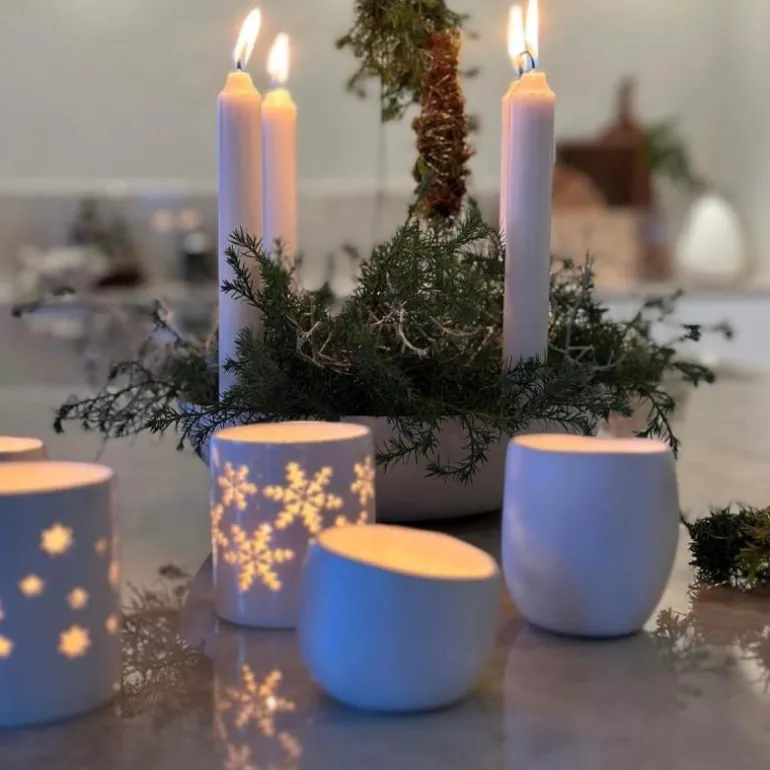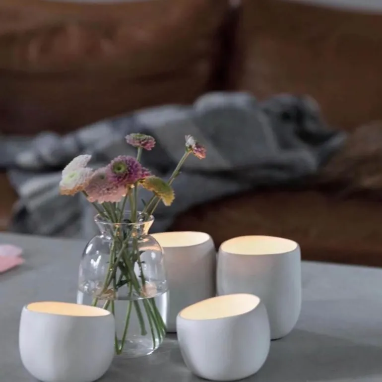 Våre Stella lysgass i brent leire er med sin organiske form, noe man blir oppriktig glad i. Håndlaget sånn at hvert eksemplar er unik. Tåler oppvaskmaskin. Kommer i sett av to.