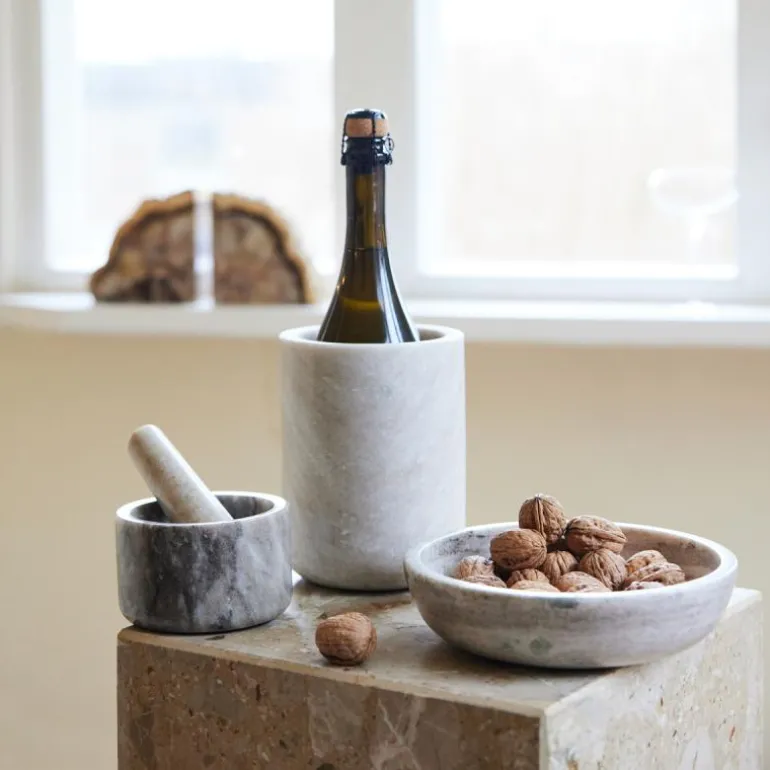 Steinmørtelen er et verdsatt medlem av kjøkkenet, sammen med steinskålen og vinkjøleren. Med sin kompakte størrelse er den en uunnværlig ressurs som alltid kan være foran deg. Laget av travertinmarmor, kjent for sin holdbarhet og slitestyrke, er denne mørtelen perfekt for kjøkkenbruk. Den tåler varme og er motstandsdyktig mot riper, noe som gjør den til en pålitelig og langvarig følgesvenn for matlaging og servering. Designstudio Sagaform. Leveres i klassisk gaveeske.