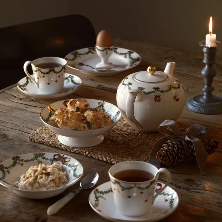 Denne tallerkenen, perfekt til både middag og dessert, er et kunstverk i seg selv og et stemningsskapende element på julebord over hele verden. Med sine gylne detaljer og håndmalte dekor fra 1783, forener Star Fluted det klassiske og det moderne i et tidløst design som tåler oppvaskmaskin – slik at du kan nyte høytiden uten bekymringer. Inviter til en jul fylt med varme og tradisjon med Royal Copenhagens ikoniske tallerken.