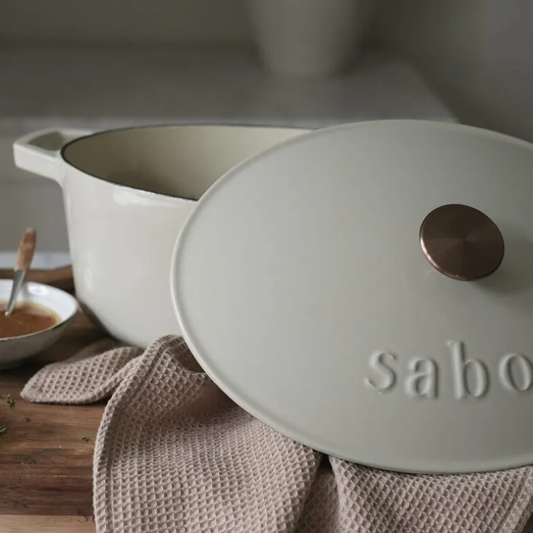 Denne robuste støpejernsgryten fra Sabor, med en kapasitet på 5,7 liter og en elegant warm grey farge, er designet for å vare i generasjoner. Gryten er kjent for sin overlegne varmebevaring og jevne varmefordeling, noe som gjør den til et ideelt valg for retter som krever langvarig steking eller koking ved jevn høy temperatur. Med denne gryten kan du ofte redusere varmen på platen betraktelig, noe som både sparer energi og gir perfekt tilberedte retter hver gang.