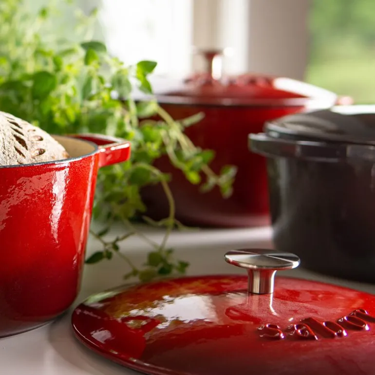 Støpejernsgryte fra Sabor på 6,7 liter i en klassisk rød farge er en kombinasjon av kvalitet, funksjonalitet og estetikk. Denne gryten er bygget for å vare i generasjoner og gir en førsteklasses matlagingsopplevelse til både profesjonelle kokker og matentusiaster.