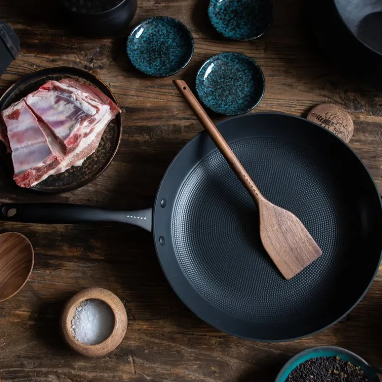 Når det gjelder rengjøring, er det enkelt: bruk varmt vann, litt oppvaskmiddel og en oppvaskbørste. Det er viktig å tørke pannen grundig etter rengjøring for å forhindre rust og bevare belegget. For best resultat og lengst mulig holdbarhet anbefales det å bruke litt fett ved matlaging, da dette beskytter belegget og gir ekstra smak til maten.