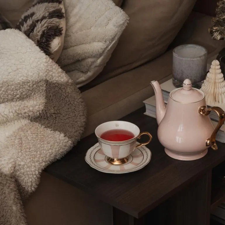 Nyt din te eller kaffe i Strisce kopp med skål 22 cl Rosa/gull, håndmalt med gull. Hver kopp har en unik design som forbedrer drikkeopplevelsen din og legger til eleganse i hjemmeinnredningen. Laget av New bone china, er dette serviset av høy kvalitet og gir deg en eksklusiv opplevelse hver gang du bruker det.