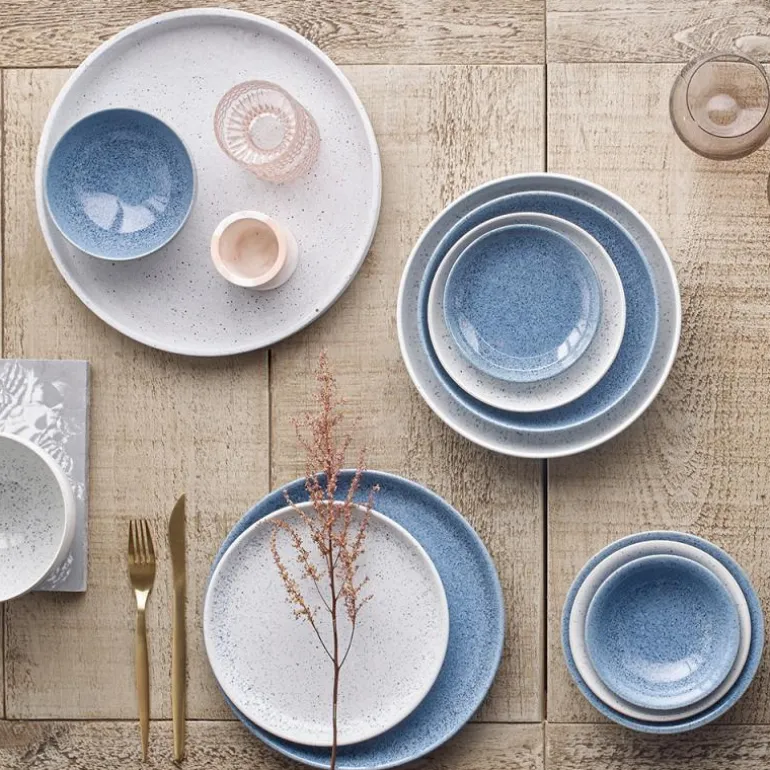 Denbys Studio Blue kommer fra den lyseste dueblå til mørkeste mørkeblå – og alle nyanser i mellom. Blåtonene er like enkle å matche og like tidløse som de er stilige. Man får ikke for mye av det blå og du kan utmerket blande de ulike blåtonene på tallerkener, serveringsfat og skåler for å gi spisebordet en dypere bredde som skaper en ny dimensjon til en ellers tradisjonell borddekking.