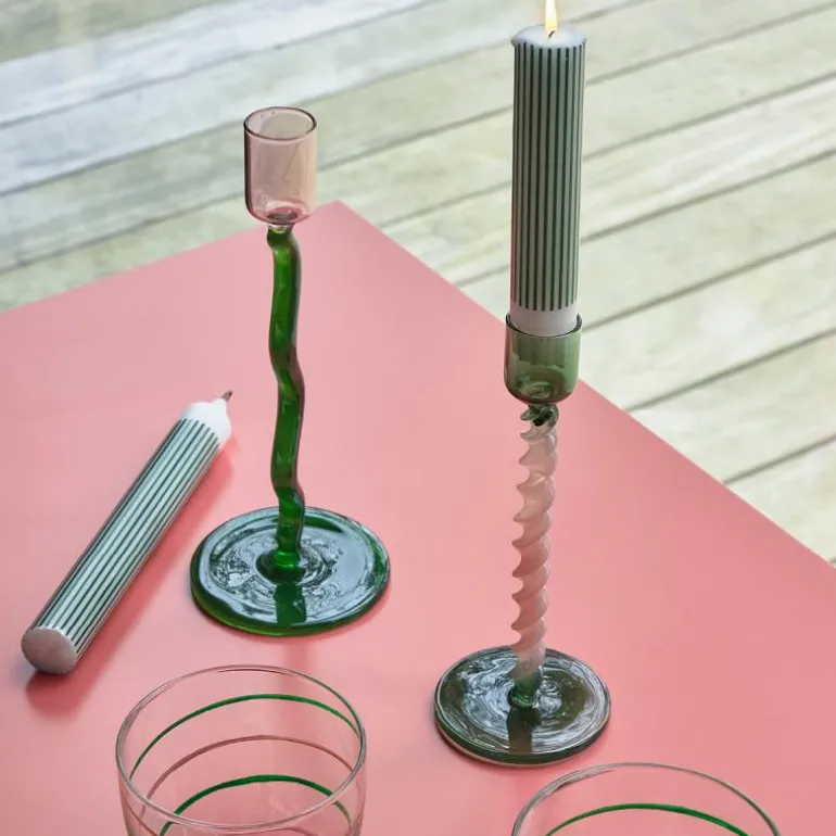 Styles lysestake glass 7,4×16,3 cm grønn/rosa, fra Villa Collection.