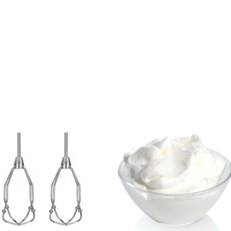 Denne kraftige håndmikseren har en motor på 450 watt, som gjør den ideell for alle bake- og tilberedningsoppgaver. Den leveres med både visper og deigkroker i rustfritt stål, som gjør den egnet for visping, blanding og elting av tyngre deiger.