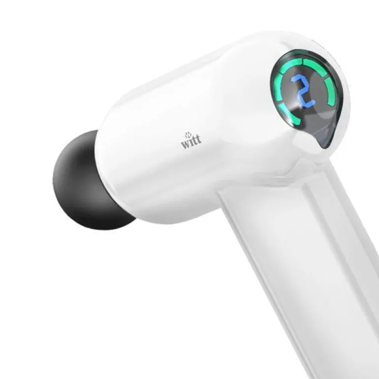 Effektiv massasjepistol til å redusere muskelspenninger, myoser og til massasje av ømme muskler etter trening. Witt Super Hit Mini er utstyrt med et tydelig og brukervennlig display som viser hastighet og batterinivå. Innebygd, oppladbart lithiumbatteri, ergonomisk grep og brukervennlig,