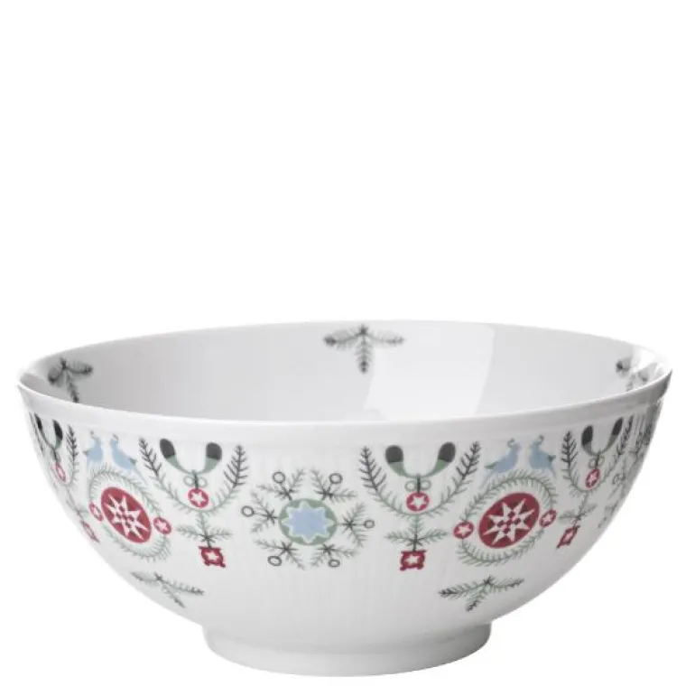 Swedish grace Vinter serveringsbolle 1,7L. Serveringsskålen fra Swedish Grace Vinter er det nostalgiske valget for servering av ulike matretter ved spisebordet, festlige anledninger og mer. Fungerer hver for seg og i kombinasjon med deler fra det originale Swedish Grace-serviset, og bidrar med farge og lekenhet på bordet. En hyllest til vinteren, tradisjoner og barndomsminner. Kan vaskes i oppvaskmaskin.