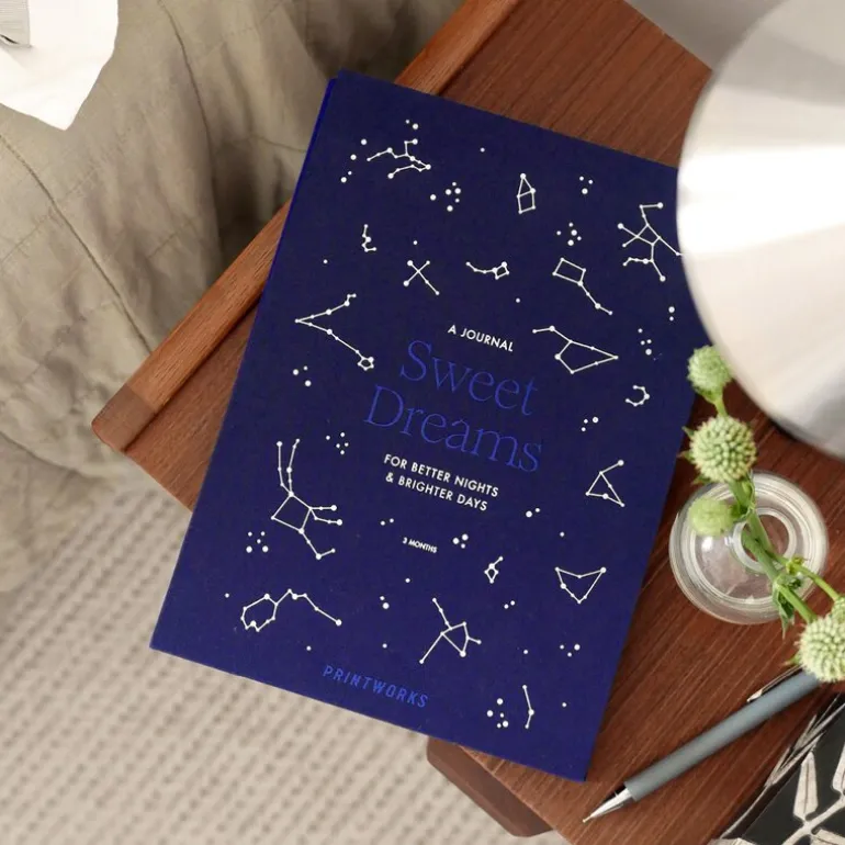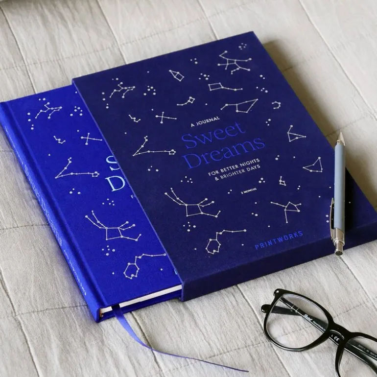 Printworks’ Sweet Dreams søvndagbok i blått kombinerer stil og funksjonalitet med et sofistikert design. Når den er lukket, fremstår den som en elegant coffee table-bok, men innvendig skjuler den en smart oppbevaringsløsning.