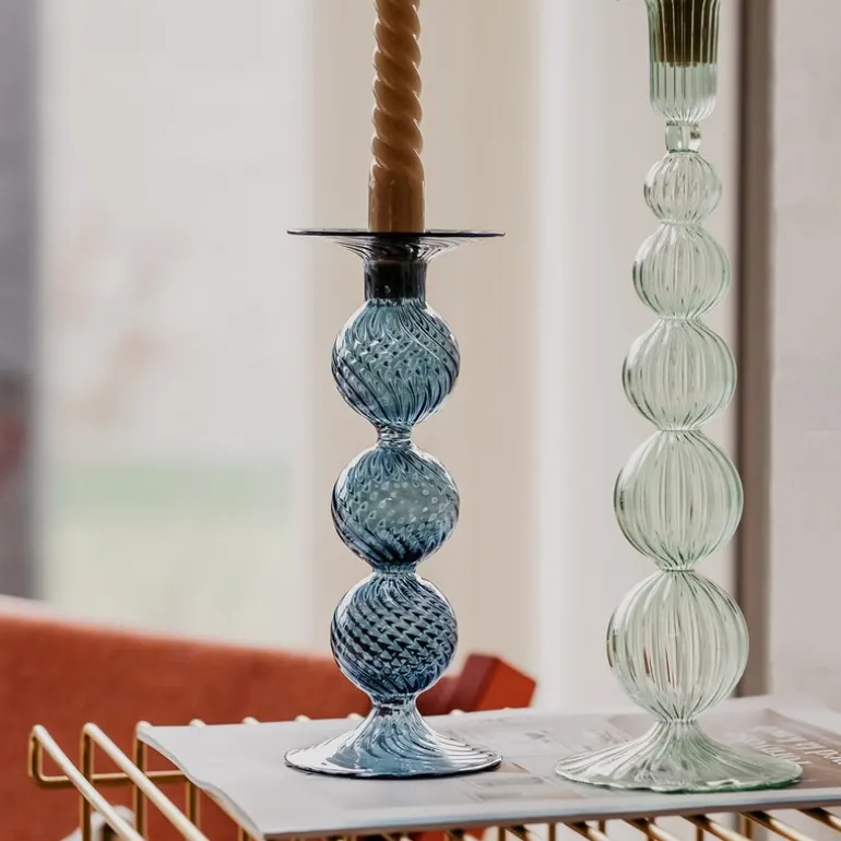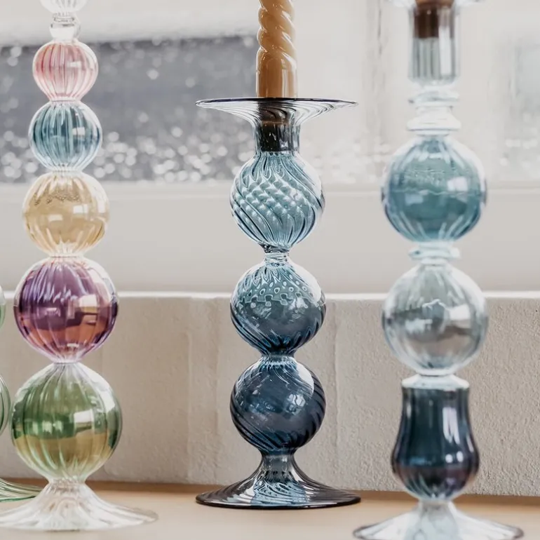 Swirl lysestake 22 cm blå fra Moonlight Copenhagen er et elegant tilskudd til ethvert interiør. Denne lysestaken er laget av munnblåst glass, og den delikate, sirkulerende strukturen gir et sofistikert uttrykk som gjør hver enkelt lysestake unik. Med sitt elegante design spiller lysestaken vakkert med lyset og skaper en nydelig atmosfære i rommet. Moonlight Copenhagen legger stor vekt på kvalitet og håndverk i alle sine produkter, og Swirl lysestake er intet unntak. Dette er en ideell dekorasjon som tilfører hjemmet en følelse av eksklusivitet og håndlaget skjønnhet. Perfekt til å pryde spisebordet, stuen eller soverommet, og gir en ekstra dimensjon av eleganse til ethvert miljø.