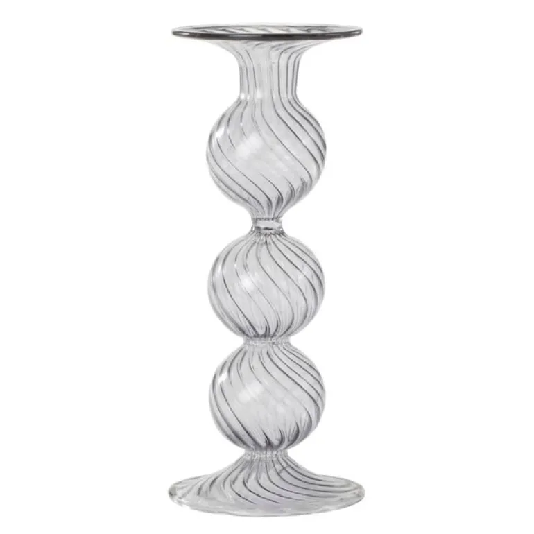 Swirl lysestake 22 cm grå fra Moonlight Copenhagen er et elegant tilskudd til ethvert interiør. Denne lysestaken er laget av munnblåst glass, og den delikate, sirkulerende strukturen gir et sofistikert uttrykk som gjør hver enkelt lysestake unik. Med sitt elegante design spiller lysestaken vakkert med lyset og skaper en nydelig atmosfære i rommet. Moonlight Copenhagen legger stor vekt på kvalitet og håndverk i alle sine produkter, og Swirl lysestake er intet unntak. Dette er en ideell dekorasjon som tilfører hjemmet en følelse av eksklusivitet og håndlaget skjønnhet. Perfekt til å pryde spisebordet, stuen eller soverommet, og gir en ekstra dimensjon av eleganse til ethvert miljø.