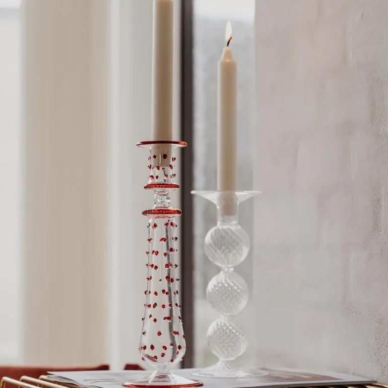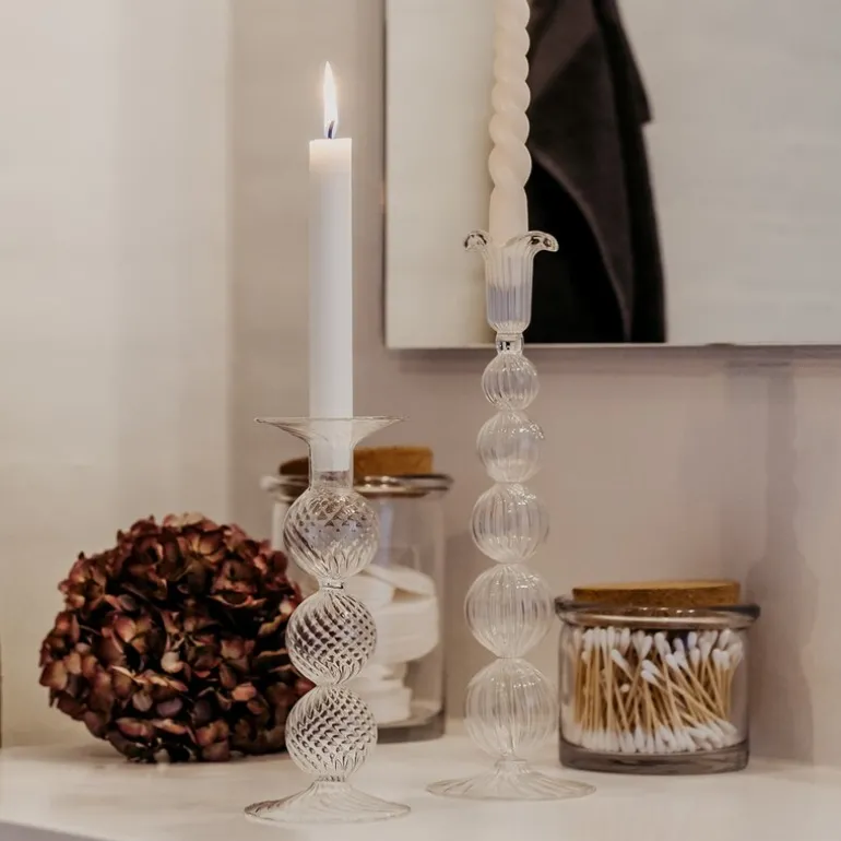 Swirl lysestake 22 cm klar fra Moonlight Copenhagen er et elegant tilskudd til ethvert interiør. Denne lysestaken er laget av munnblåst glass, og den delikate, sirkulerende strukturen gir et sofistikert uttrykk som gjør hver enkelt lysestake unik. Med sitt elegante design spiller lysestaken vakkert med lyset og skaper en nydelig atmosfære i rommet. Moonlight Copenhagen legger stor vekt på kvalitet og håndverk i alle sine produkter, og Swirl lysestake er intet unntak. Dette er en ideell dekorasjon som tilfører hjemmet en følelse av eksklusivitet og håndlaget skjønnhet. Perfekt til å pryde spisebordet, stuen eller soverommet, og gir en ekstra dimensjon av eleganse til ethvert miljø.