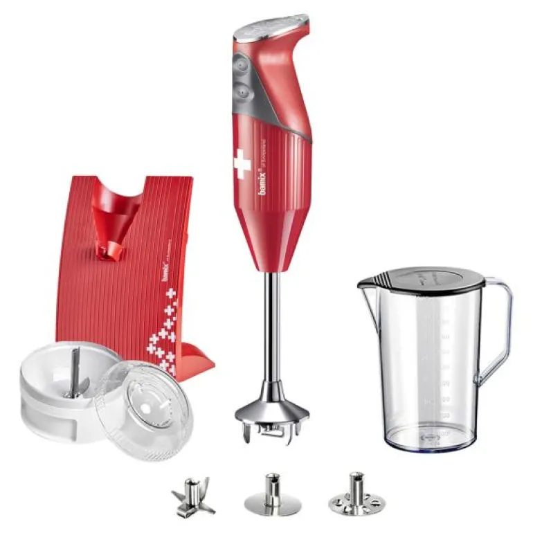 Bamix Swissline i rød er en stavmikser som er designet for å gi deg pålitelig og kraftig støtte i kjøkkenet. Med en 200-watts motor, er denne stavmikseren klar til å ta fatt på selv de mest utfordrende oppgavene. Den har to hastighetsinnstillinger og en softgrip-sikkerhetsknapp som sikrer komfortabel og sikker bruk.
