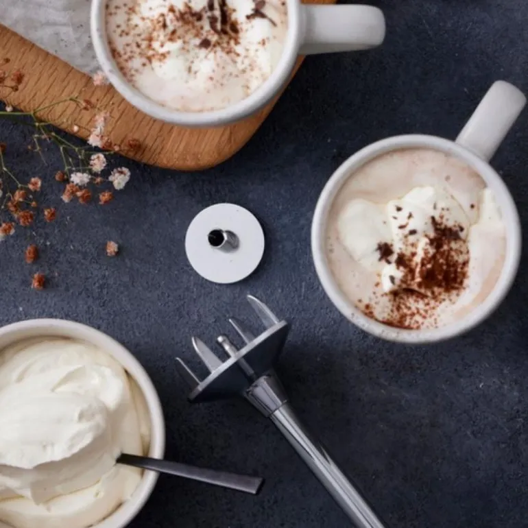 Dette allsidige kjøkkenredskapet leveres med en rekke nyttige tilbehør: en multifunksjonskniv, blenderskive, vispeskive, en prosessor for finere oppgaver, samt en stor miksekanne med lokk på 1000 ml og et hendig bordstativ. En brukervennlig bruksanvisning hjelper deg å utnytte alle funksjonene til fulle. Bamix Swissline lar deg vispe, lage puré, røre, blande, mikse, male og hakke med letthet.