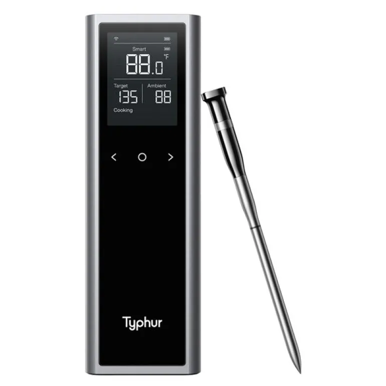 Når batteriet er fulladet, varer det i over 50 timer. En hurtiglading på to minutter gir deg to timers ekstra bruk. Appen gir deg tilgang til detaljert temperaturkontroll, justerbare varsler og forslag til tilberedning for ulike typer kjøtt.