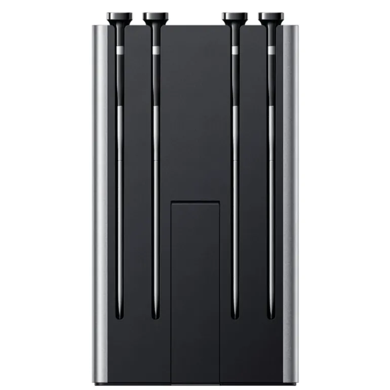 Typhur Sync Quad er et avansert trådløst steketermometer som leveres med fire prober og tilbyr nøyaktige temperaturmålinger takket være moderne sensorteknologi. Med støtte for Bluetooth 5.4 har enheten rekkevidde på opptil 120 meter i åpne områder og 65 meter innendørs. Metallstativet fungerer som både ladestasjon og kommunikasjonsenhet, og sørger for enkel tilkobling til både Wi-Fi og Bluetooth.