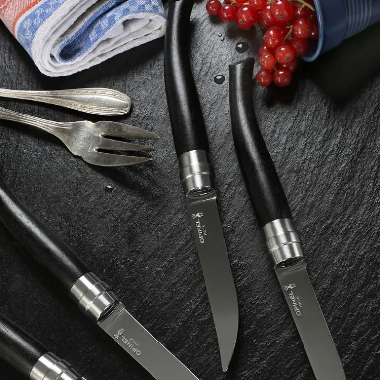 Table Bois bestikksett 4 deler Table Chic ibenholt fra Opinel er et uttrykk for sofistikert fransk håndverk og tidløs design. De fire knivene har elegante, buede håndtak i dyp ibenholt som ligger behagelig i hånden og gir borddekkingen et eksklusivt preg.