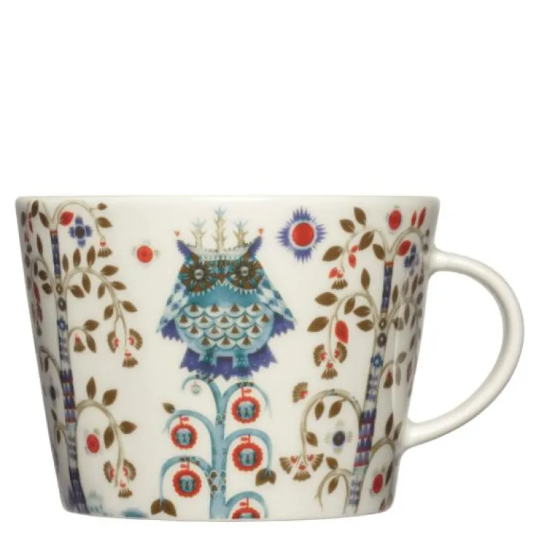 Taika kopp 30 cl hvit fra Iittala. Designer Klaus Haapaniemis kunst og Heikki Orvolas stilige design kombineres på en unik måte i Taika-koppen på 0,3 l. Passer med 16 cm skål. Størrelsen på 0,3 l er perfekt for alle varme drikker. Detaljrikdommen i det fargerike mønsteret fremheves vakkert mot koppens hvite bakgrunn.