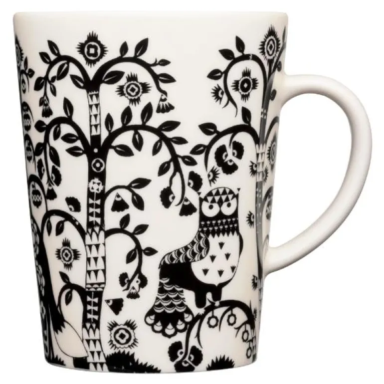 Taika krus 0,4L svart. Designet av Klaus Haapaniemi i 2007.Taika betyr magi på finsk. Et spennende mønster på rene, moderne former som utfordrer fantasien. Utforsk detaljene i dekoren og la deg overraske. Miks med andre serviser og glass for å skape din personlige stil. Alle deler er ildfaste, tåler mikrobølgeovn, fryser og oppvaskmaskin. Designer Klaus Haapaniemi. Kan vaskes i oppvaskmaskin.