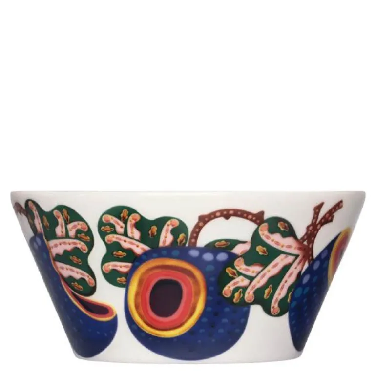 Taika Sato er en kombinasjon av Klaus Haapaniemis livlige illustrasjoner og Heikki Orvolas tidløse og funksjonelle design. De stilleben-inspirerte mønstrene viser et fortryllende utvalg av frukt og grønnsaker. Skålen på 0,6L er perfekt til salater, desserter og som fruktskål.