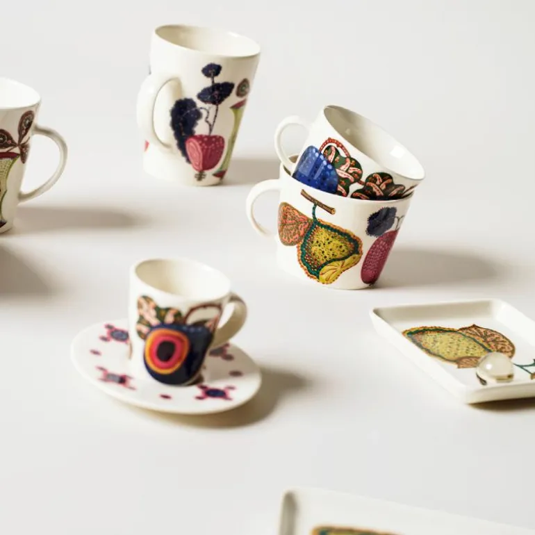 Taika Satos 12×12 cm tallerken kombinerer Klaus Haapaniemis livlige kunst med Heikki Orvolas strømlinjeformede design, og fanger essensen av stilleben. Tallerkenen har fengslende illustrasjoner av frukt og grønnsaker, og er både praktisk og dekorativ. Perfekt til småretter og forretter. Tallerkenen er en flott gave til designelskere.