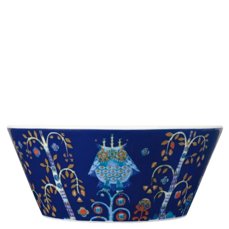 Taika skål 0,3L blå. Designet av Klaus Haapaniemi i 2007.Taika betyr magi på finsk. Et spennende mønster på rene, moderne former som utfordrer fantasien. Utforsk detaljene i dekoren og la deg overraske. Miks med andre serviser og glass for å skape din personlige stil. Alle deler er ildfaste, tåler mikrobølgeovn, fryser og oppvaskmaskin. Designer Klaus Haapaniemi. Kan vaskes i oppvaskmaskin.